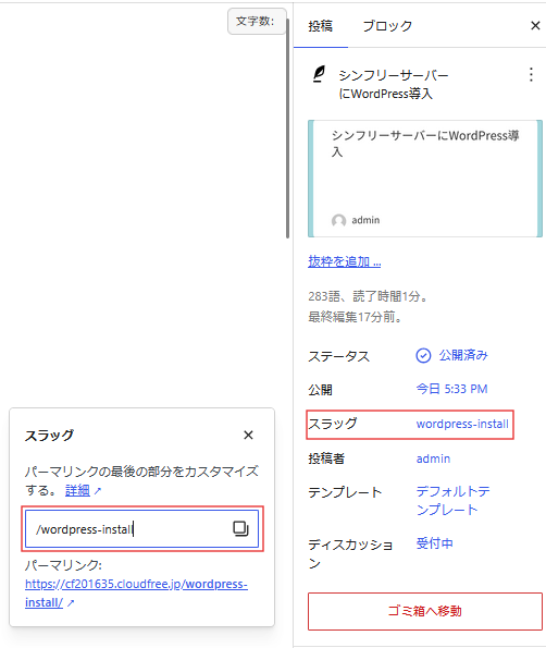 【注意】スラッグは一度記事を保存してからでないと設定できません